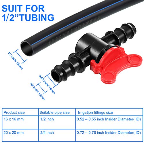 Save both water and energy: 8 pieces switch valves for use with 1/2 inch drip irrigation tubing, helping your adjust water to flow or to turn off, save your energy