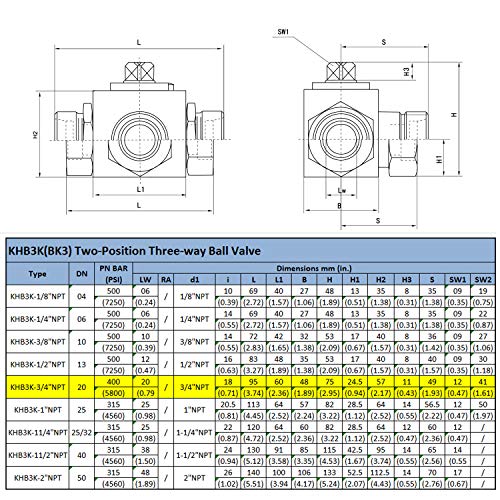 Model:KHB3K 3/4” NPT, 2-position 3-way NPT ball valve