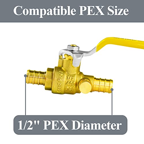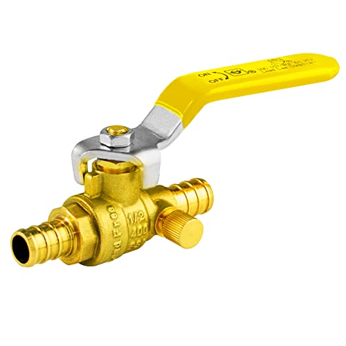 Simplify your plumbing projects with WiseWater brass crimp ball valve with drain; these lead-free brass valves are designed for PEX piping systems. The ball valve features a drain allowing water to be drained from the pipe if needed. It’s compatible with PEX and PE-RT piping and easy to install with pipe fittings like stainless steel crimp rings and clamps. The heavy-duty forged brass valve pressure is rated 150 PSI for steam and 400 PSI for water, oil, and gas.